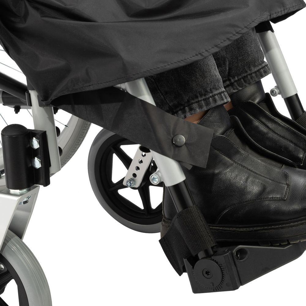 Дождевик-пончо для инвалидной коляски предназначен для езды в плохую погоду и защищает от дождя, ветра и других неблагоприятных погодных условий. Свободный крой дождевика-пончо обеспечивает легкость надевания и снятия, что делает его удобным для малоподвижных пользователей. Удлиненная передняя часть дождевика-пончо защищает ноги от влаги. Чтобы повысить безопасность в условиях плохой видимости, дождевик-пончо оснащен светоотражающими полосами.