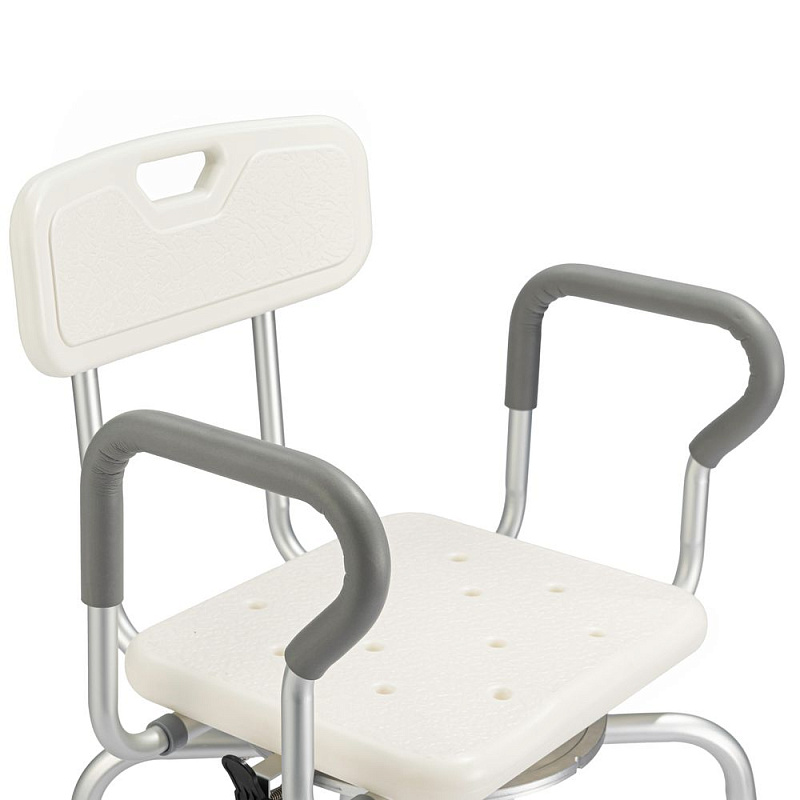 Стул для ванны Ortonica LUX 630 оснащен поворотным сиденьем 360° из гигиенического пластика, что облегчает пересаживание и делает водные процедуры более комфортными.
