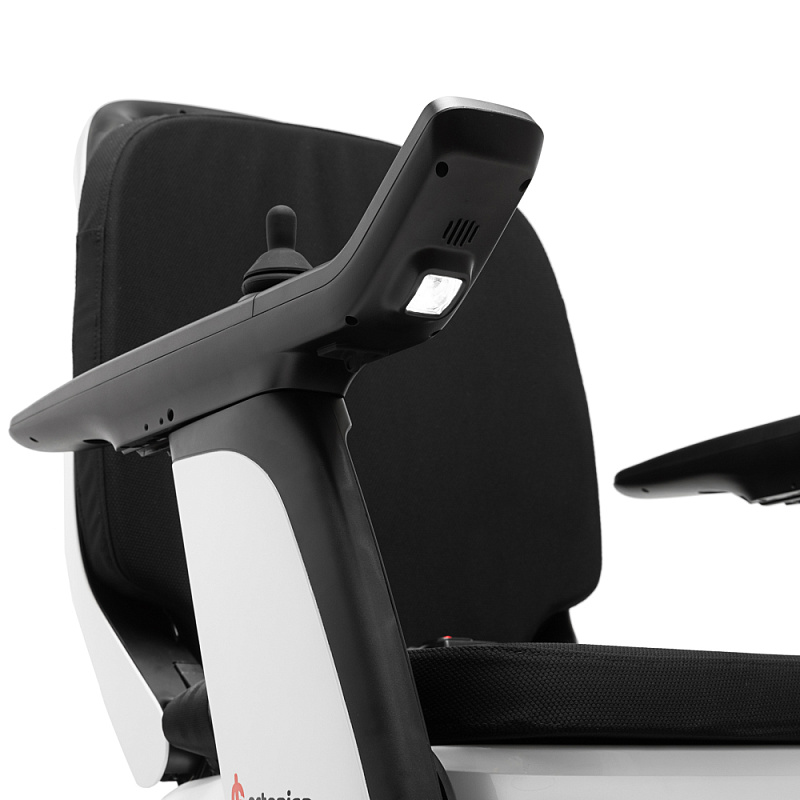 Мощные бесщеточные двигатели и большие пневматические колеса обеспечивают проходимость, а амортизаторы снижают нагрузку на позвоночник.